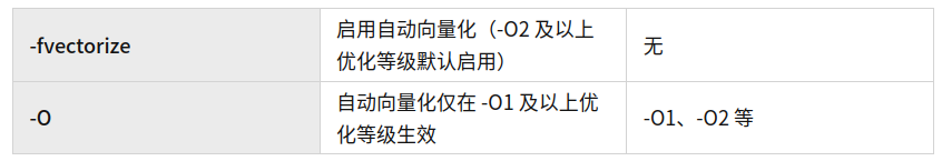 - 在 gcc 中使能自动向量化配置参数如下: