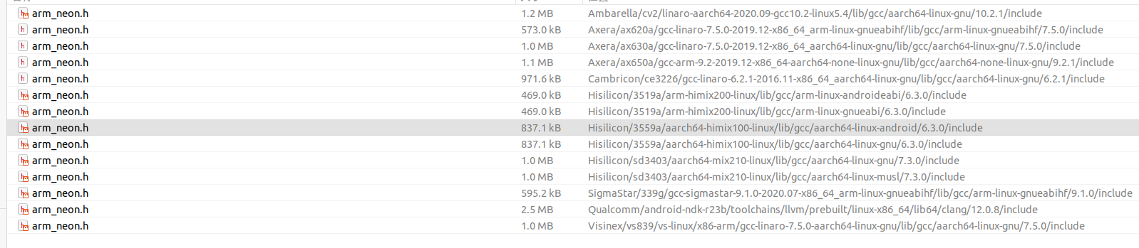 一般嵌入式设备上 arm_neon.h 头文件在各自的交叉编译器下的 include 目录下