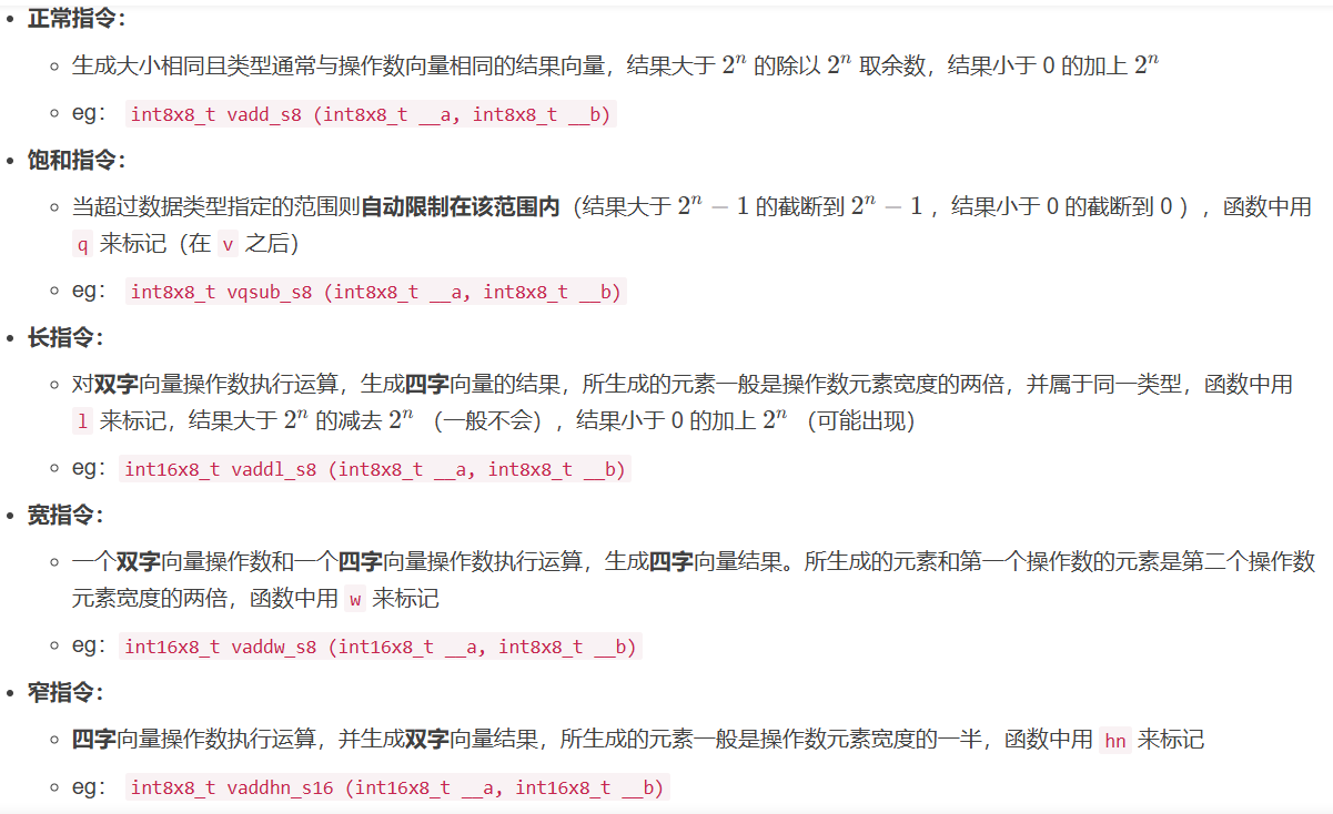 2.2、NEON 指令类型