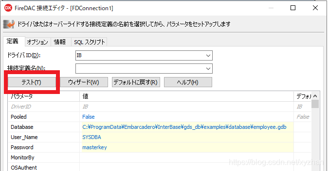 设置连接数据库所需的参数后,请在FireDAC连接编辑器中按[Test]按钮。