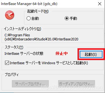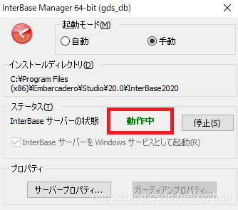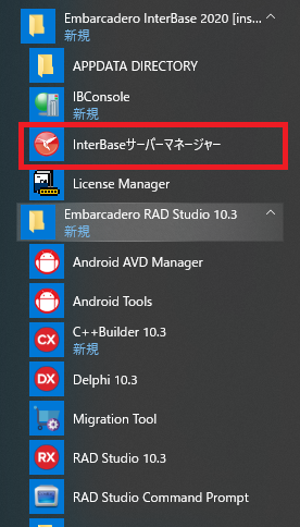 通过从Windows开始菜单中选择“ Embarcadero InterBase 2020 [instance = gds_db]”-“ InterBase Server Manager”来启动“服务器管理器”。
