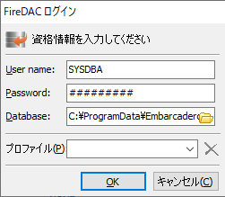 | 数据库 | C:\ ProgramData \ Embarcadero \ InterBase \ gds_db \ examples \ database \ employee.gdb |