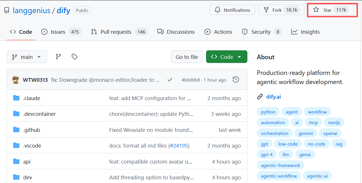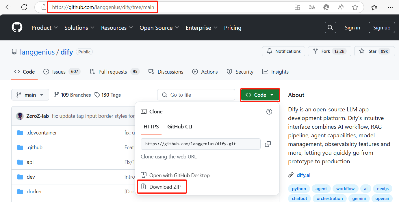 下载地址:https://github.com/langgenius/dify/tree/main