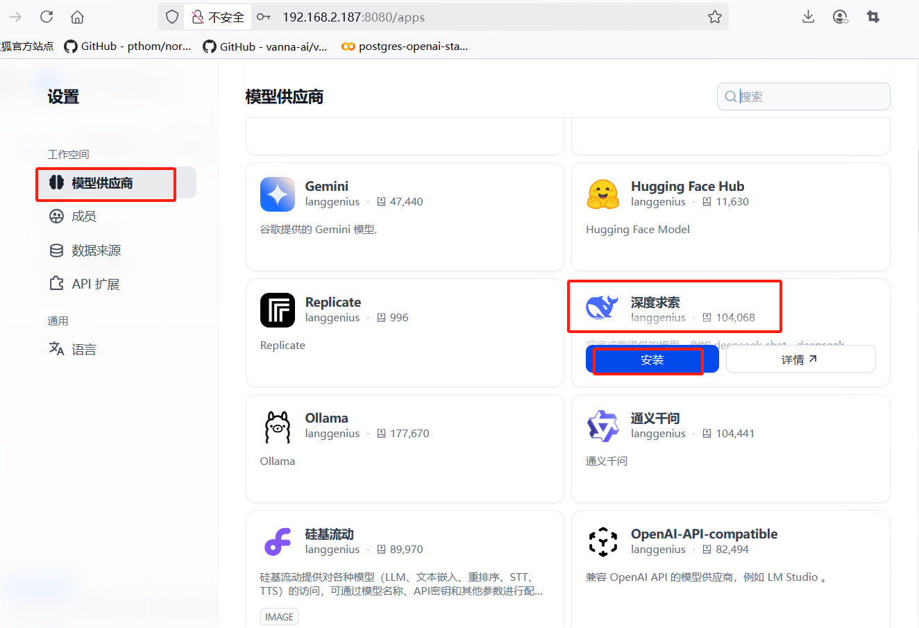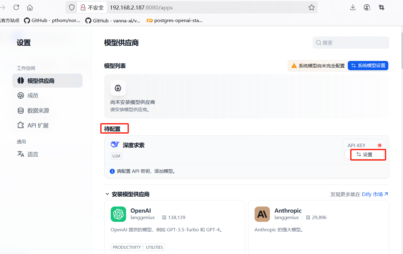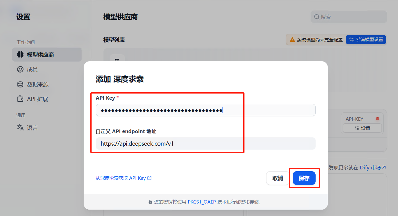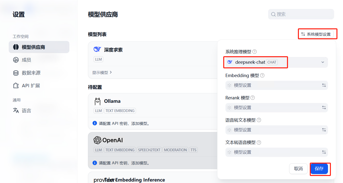 安装完模型供应商后,使用deepseek的api配置模型