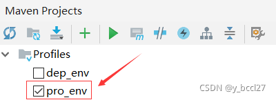 可以看到默认情况下pom.xml中的pro_env环境会被启用,这样项目在打包的时候就可以根据勾选中的环境将对应环境变量替换到配置文件中