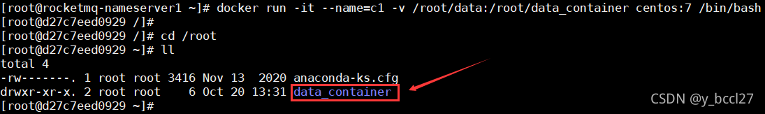 docker run -it --name=c1 -v /root/data:/root/data_container centos:7 /bin/bash