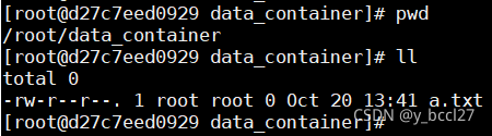 接着会发现在容器c1的/root/data_container目录下也多了这么一个文件,如下图所示: