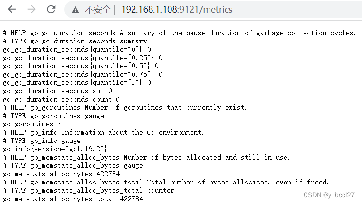 通过访问 http://192.168.1.108:9121/metrics 验证该采集服务是否正常: