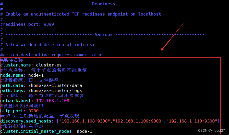 discovery.seed_hosts: ["192.168.1.108:9300","192.168.1.109:9300","192.168.1.110:9300"]