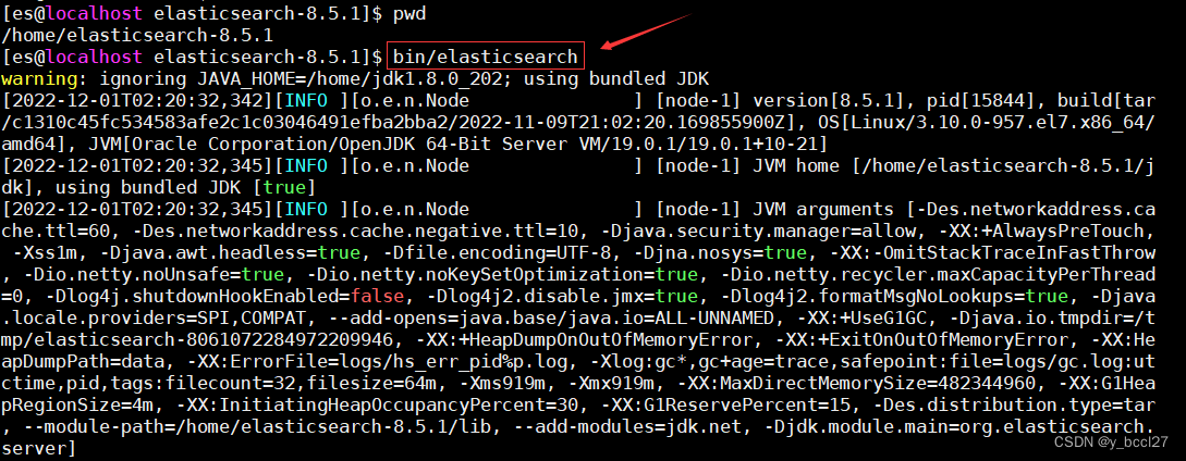 第十步:使用su es命令切换到es用户下, 使用下述命令启动服务