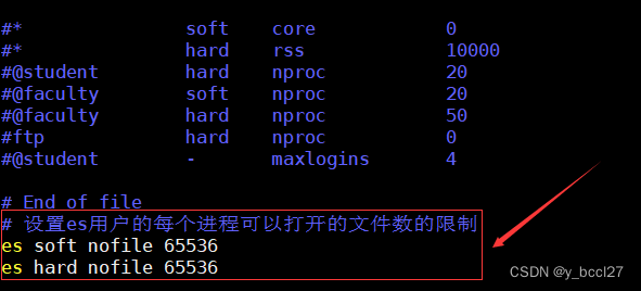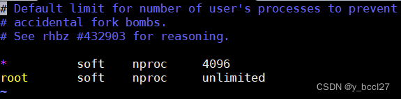 打开这个文件,可以看到里面已经有相关的配置,所有用户(包含了es用户,暂时不做任何处理)的软连接最大进程数设置为4093,root用户则不进行任何限制,