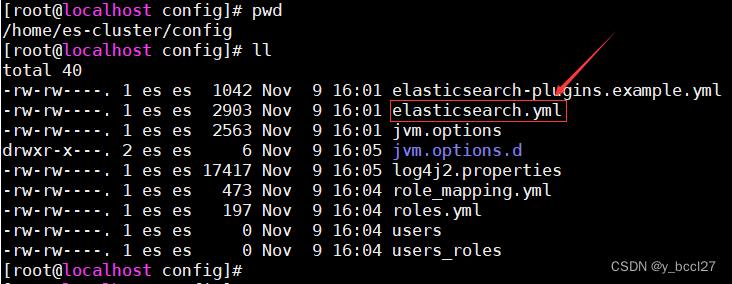 第四步:在三台服务器的/home/es-cluster/config目录下找到elasticsearch.yml文件