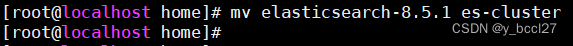 第二步:将三台服务器中/home路径下的 elasticsearch-8.5.1 目录重命名为 es-cluster