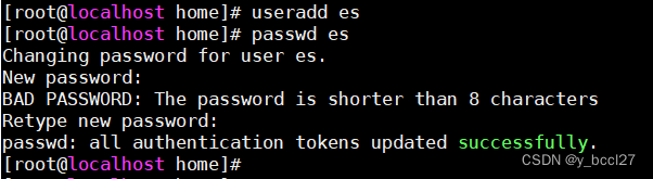 第三步:在三台服务器中使用下述命令新增es用户,其密码也是es