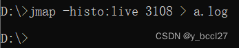 假如我现在是一个运维,即便知道有很多的对象信息,也无法进行分析,应该将这些数据转交给开发人员,可以考虑将当前的对象的数据信息保存在一个名为“a.log”的文件之中。因此我们可以使用下述命令将该进程中所有存活的对象的数据信息保存在指定文件中:
