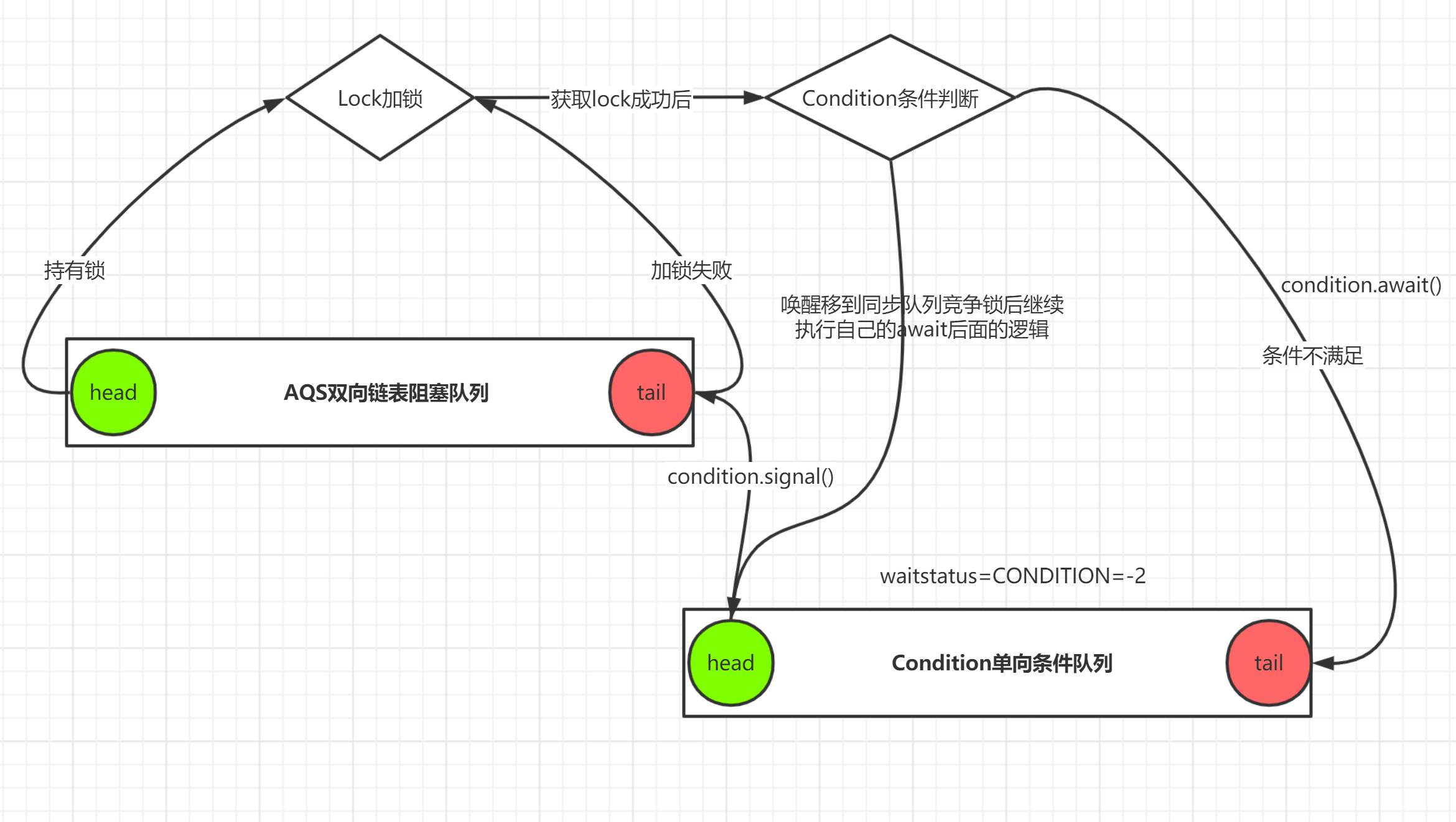 - condition队列的node状态是CONDITION=-2
