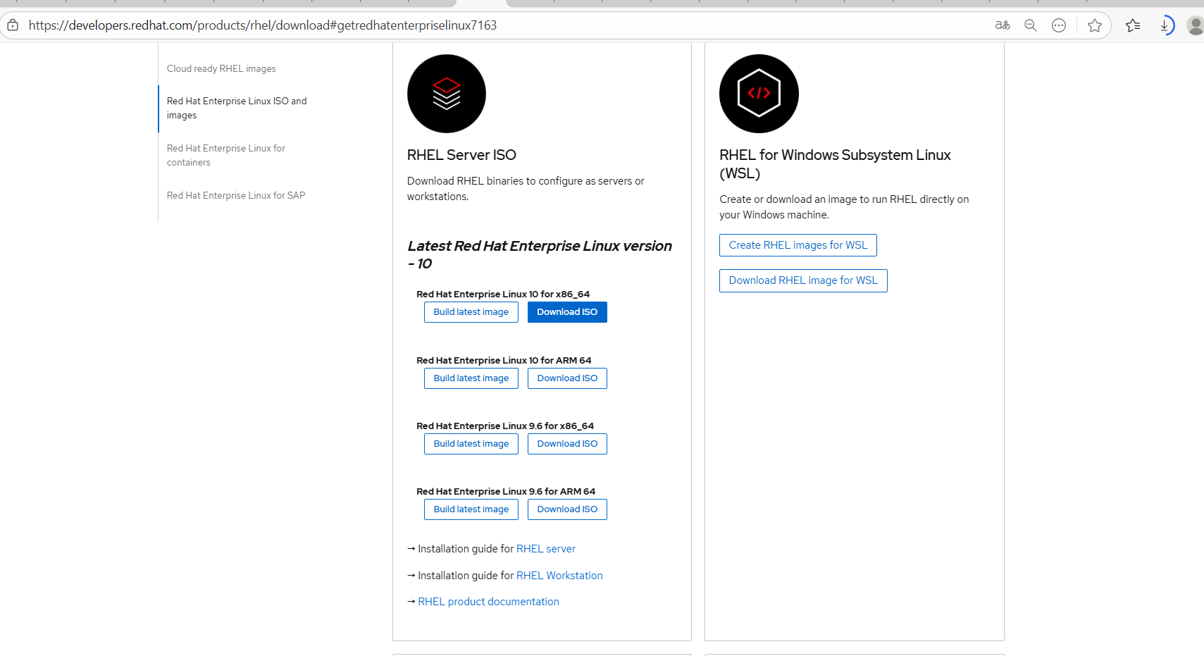 打开网页之后往下翻,选择想要的镜像下载,我想要的是 Red Hat Enterprise Linux 10 for x86_64 版本,就点击下面的Download