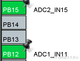 参考蓝桥杯数据手册可以得到蓝桥杯有两个关于电压采集的电位器,打开cubemx可以找到对应的ADC以及通道