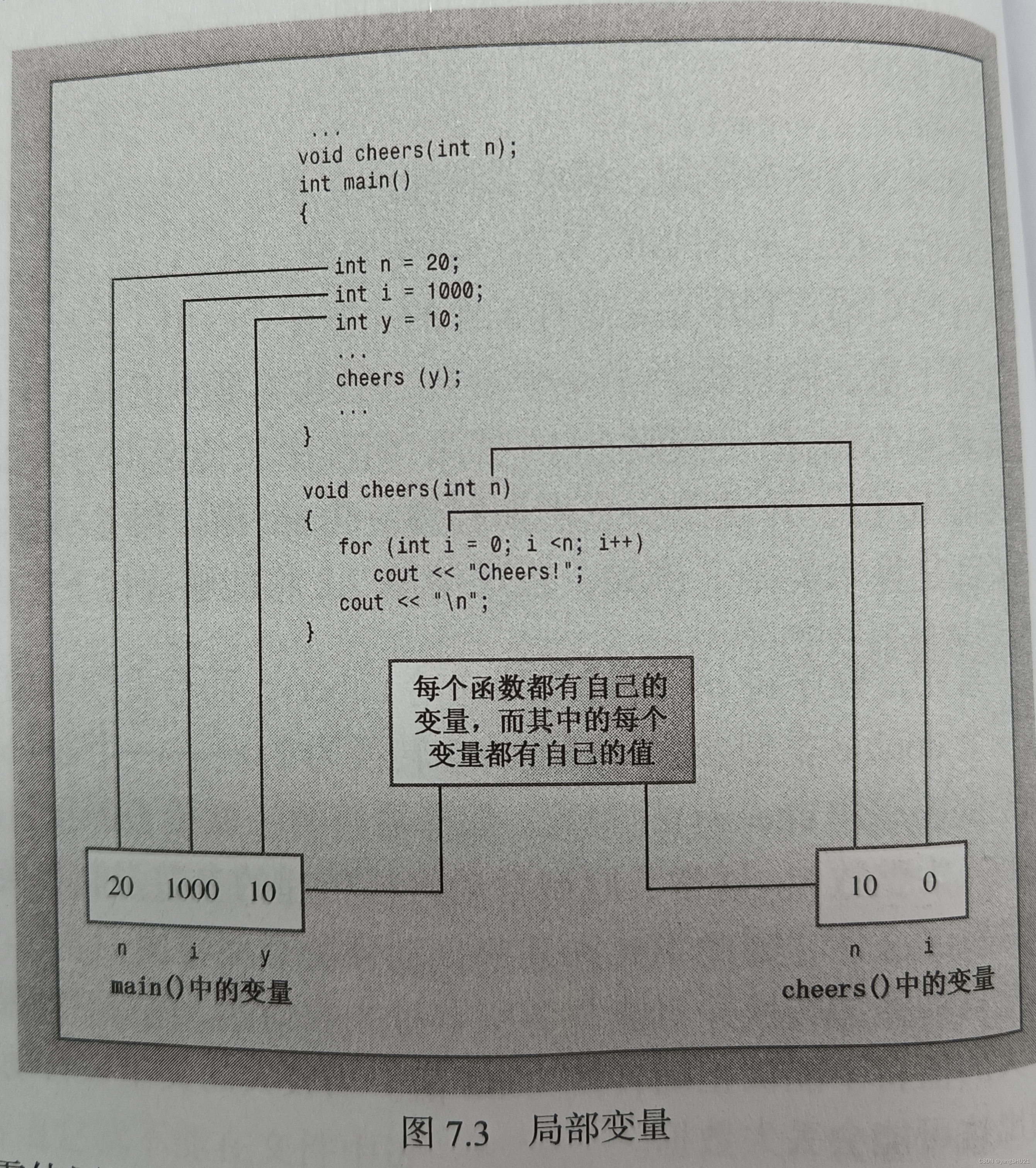 在函数中声名的变量(包括参数)是该函数私有的。在函数被调用时,计算机将为这些变量分配内存,在函数结束时,计算机将释放这些变量使用的内存,这样的变量被称为局部变量。