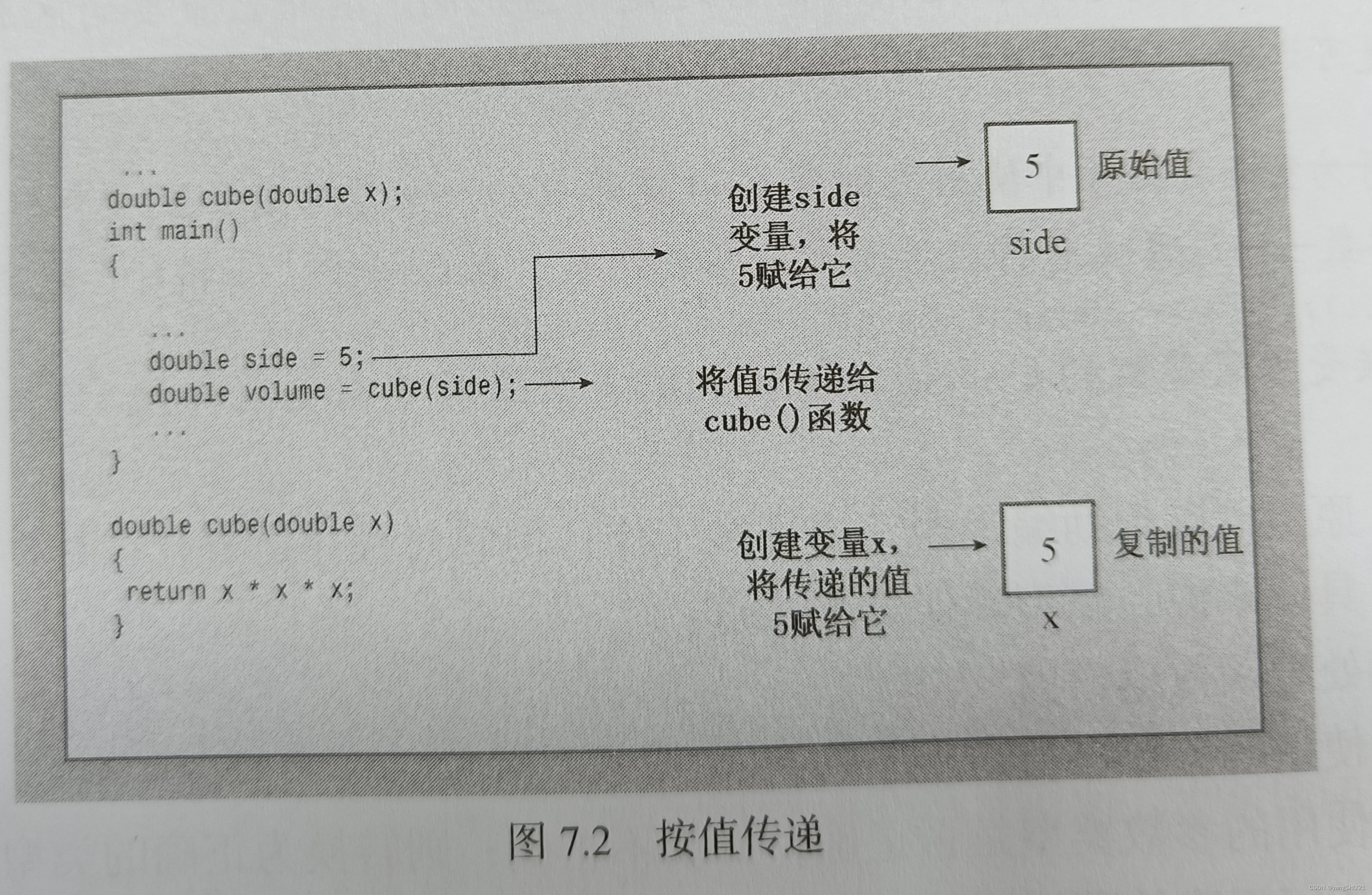 C++通常按值传递参数,这意味着将数值参数传递给函数,而后者将其赋给一个新的变量。