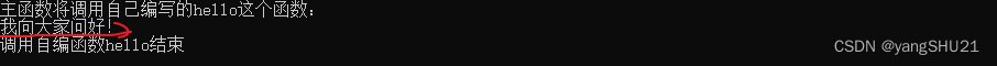 cout << "主函数将调用自己编写的hello这个函数:" << endl;