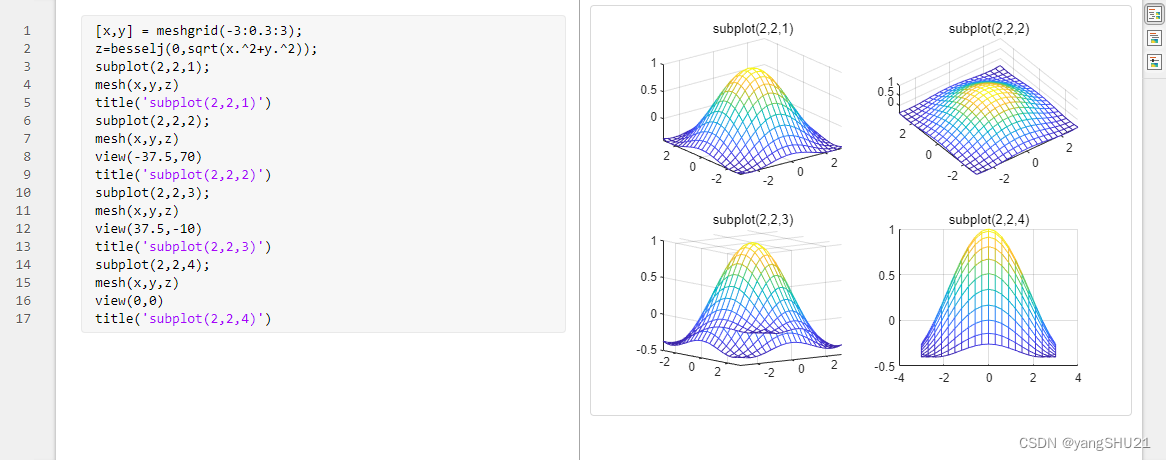 subplot该函数把几个独立生成的图形放在同一个图形窗口中,参数m和参数n分别表示把图形窗口分为行和列的子图数目,参数p指出图形放在第几个子图中。
