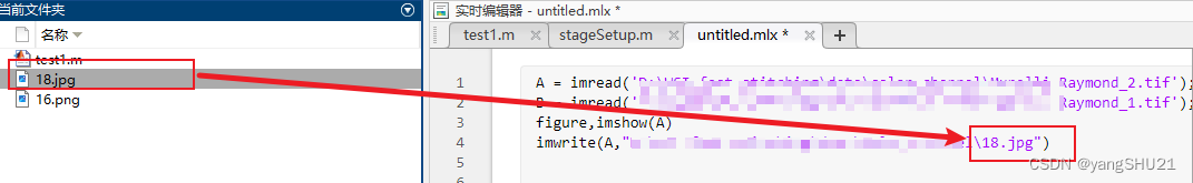 imwrite(A,filename)将图像数据A写入到filename指定的文件,并从扩展名推断出文件格式,imwrite在当前文件夹中创建新文件。