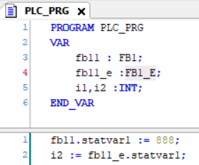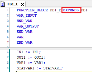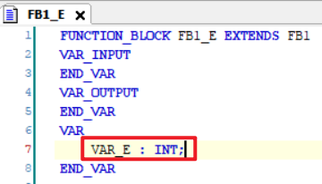 这里有个类FB1,这个FB1有些变量。我们再声明一个类FB1_E,作为FB1的扩展类。如下图
