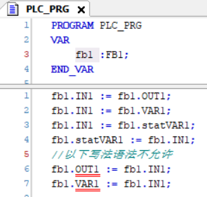如果在外部写入普通变量或者输出变量,那么系统会报错。也就是CODESYS编译系统会报错。这是一个典型的有逻辑但不合法的例子。其实,只要更改编译系统,使得不让编译系统在这种情况下报错,是完全办得到的。但是为什么CODESYS编译系统要报错呢?因为CODESYS编译系统要维护对象的封装性。我们知道OOP编程的3个特点之一就是封装性。把一些内容封装起来,使得外部不容易更改内部的内容。这很重要。如果不维护封装性的话,那么对象内部可能受外部代码的随意更改,从而失去了对象原本的功能。