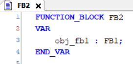 在FB2中,声明一个变量obj_fb1,该变量的类型是类FB1。这样就形成了对象中包含对象的局面。这就是今天要探讨的类的层次。我们这里讲的嵌套是指类的成员变量类型声明为其他类。一些高级语言支持的类嵌套与今天我们要探讨的类嵌套的形态不同,我们先不探讨。