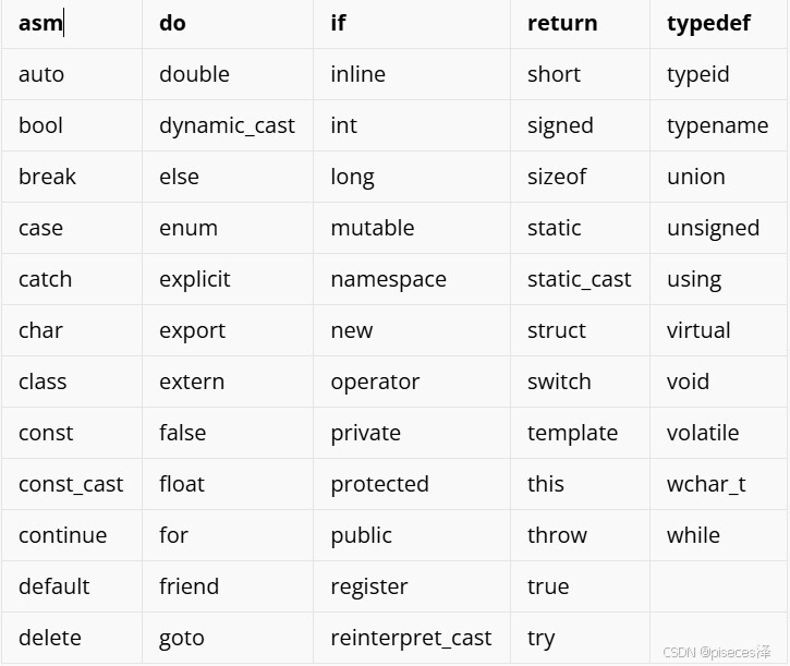 作用:C++规定给标识符(变量、常量)命名时,有一套自己的规则