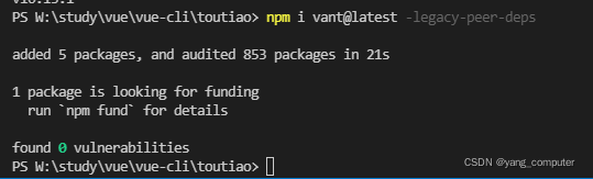 也就是将安装命令改为:npm i vant@latest --legacy-peer-deps。既然成功了,那就记录一下吧,这个错误是由于版本的兼容性导致的。