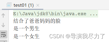 例如,下面有一个父类和一个子类,父类中有一个普通方法和一个静态方法,子类继承了父类,在main方法中new子类,使用子类对象可以调用父类中的face()和gender()方法;