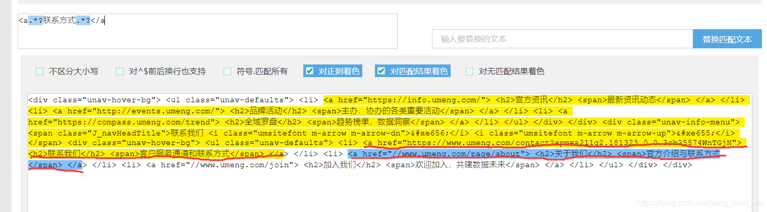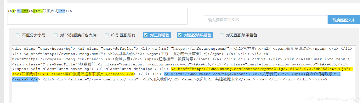 最近在工作中遇到一个需求,就是找出html中所有锚文字包含 联系方式 的超链接。刚开始我写了一个很简单的正则来解决这个问题<a.*?联系方式.*?</a。但是在测试的时候却发现这个正则表达式并不像我想象的那样工作。