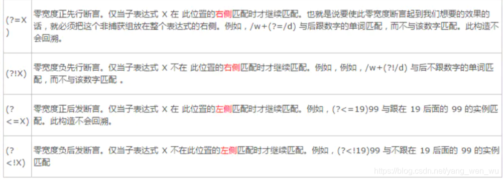 零宽断言总共有四种