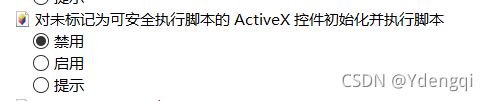 如题,写了几个控件给网页调用,必须要去设置ie的受信任站点中的安全级别,一不小心设置变了的话,页面调用控件就会报错。比如(SCRIPT3: 找不到成员),以前碰到该错误的解决办法只能去将“对未标记为可安全执行脚本的ActiveX控件初始化并执行脚本”这一项设置为启用。