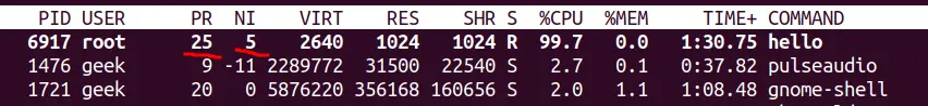 利用nice来调整,如:sudo nice -n 5 ./hello ---设置普通进程 nice值为5