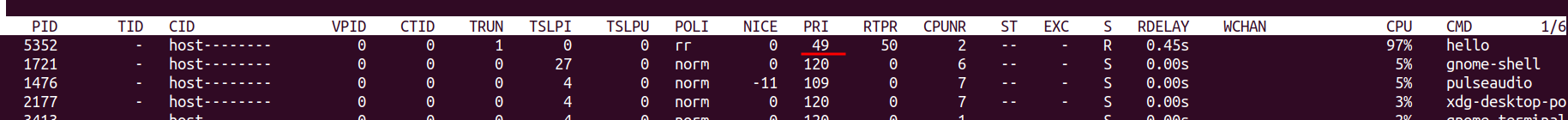 atop -s 的取值 PRI就是内核归一化的值, RTPR 在线程为rt线程时,显示为用户api设置的值,当为normal线程时为0;