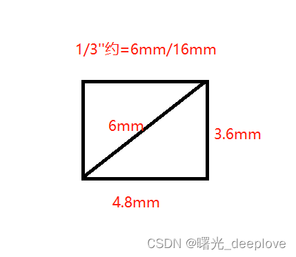 1/3英寸——靶面尺寸为宽4.8mm*高3.6mm,对角线6mm。