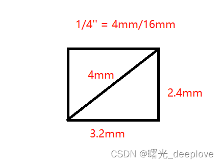 1/4英寸——靶面尺寸为宽3.2mm*高2.4mm,对角线4mm。