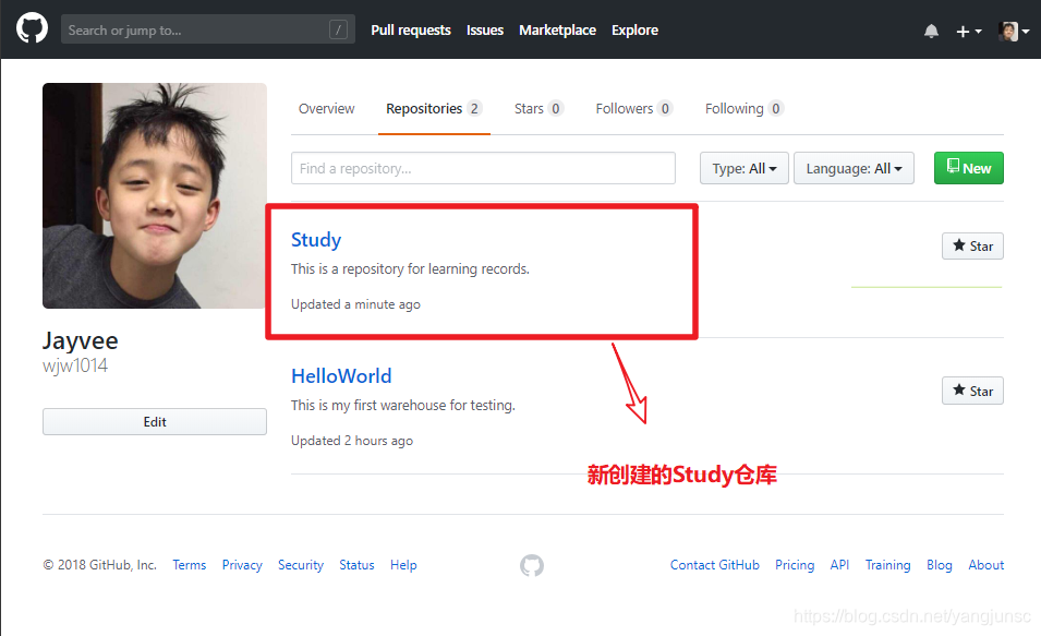 7、此时新建的仓库已经成功提交到Github,在GitHub官网,可以看到我们刚刚创建的Test仓库。