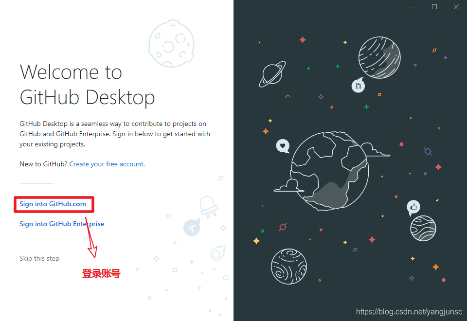 1、打开 GitHub Desk top,登录 GitHub 账号。