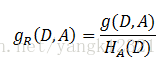 3.信息增益 :特征A对训练数据集D的信息增益g(D,A),定义为集合D的熵(经验熵)与特征A给定条件下D的条件熵(经验条件熵)H(D|A)之差,即
