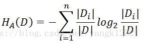 在样本集合D根据特征A是否取某一个可能值a被分割成D1与D2两个部分,即