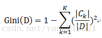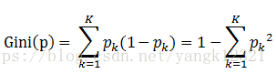 基尼指数 :在分类问题中,假设有K个类,样本点属于第K类的概率为Pk,则概率分布的基尼指数定义为: