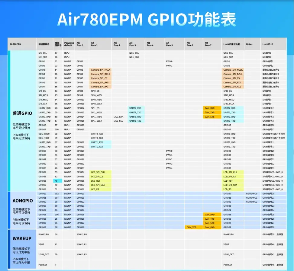 1、OneWire 功能支持在 Air780EPM 的 4 个管脚使用, 但硬件通道只有 1 个, 默认是 GPIO2(管脚号 PIN23)