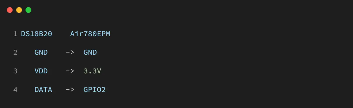 LuatOS 支持 OneWire 通信协议,本文以 DS18B20 温度传感器和 Air780EPM 搭配来举例说明;