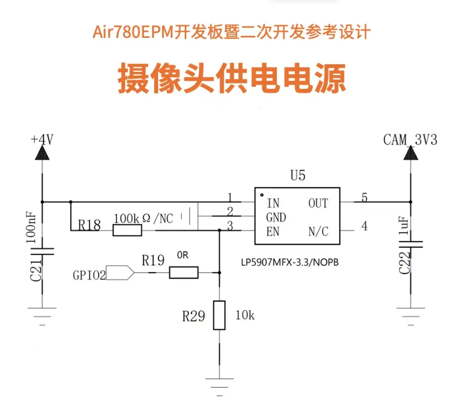 2、GPIO2(Air780EPM 模组管脚 PIN23)已在 Air780EPM 开发板顶部 46PIN 插针连接器的 PIN14 引出,非常方便调试,但仍需特别注意的是: GPIO2(Air780EPM 模组管脚 PIN23)在 Air780EPM 开发板上已经作为控制摄像头供电 LDO 启动的 GPIO 使用,调试时需要将该部分电路的 R19 和 R29 用热风枪吹掉;