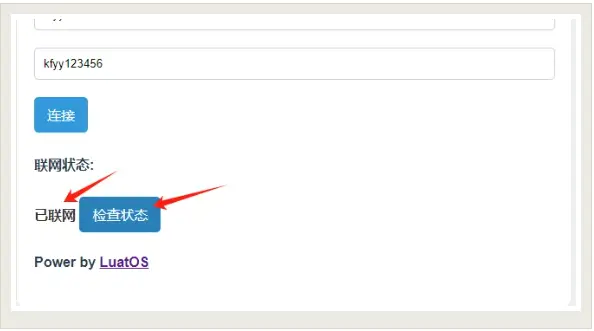 点击“检查状态”按钮,检查是否成功连接网络。如下图显示“已联网”则配网成功。