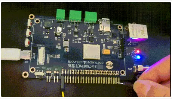 准备一根杜邦线,将Air780EPM开发板上的GPIO24引脚在 GND/3.3V引脚中间切换,即可看到LED灯亮灭变化。